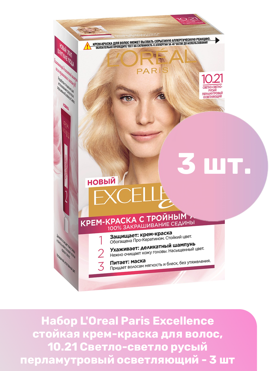 Купить L'Oreal Paris Excellence стойкая крем-краска для волос, 10.21 Светло-светло русый перламутровый осветляющий - 3 шт