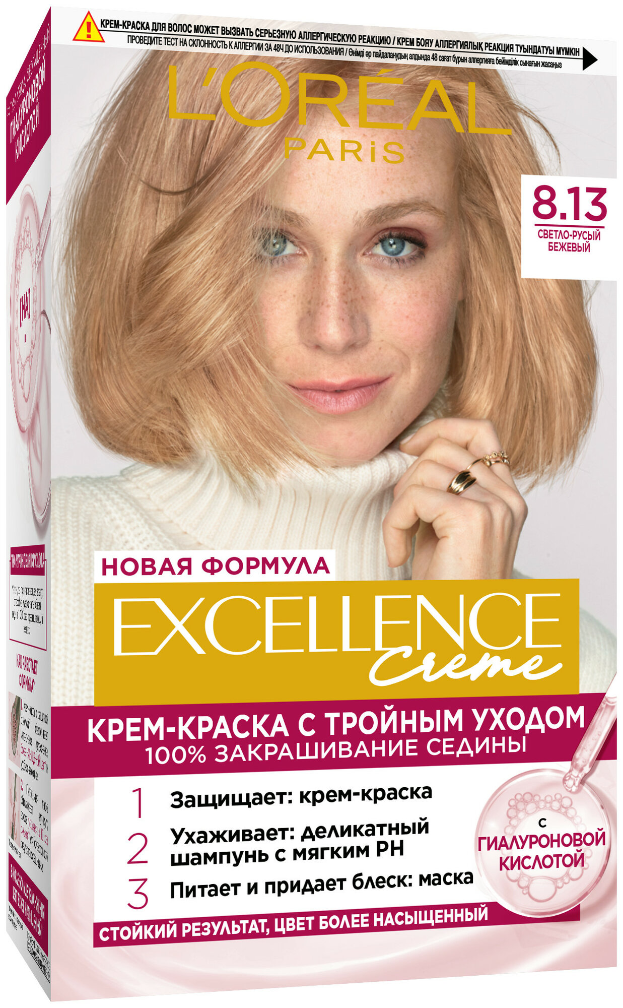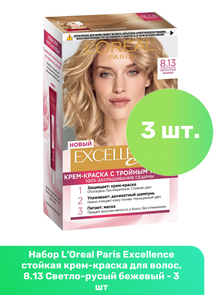 Купить L'Oreal Paris Excellence стойкая крем-краска для волос, 8.13 Светло-русый бежевый - 3 шт