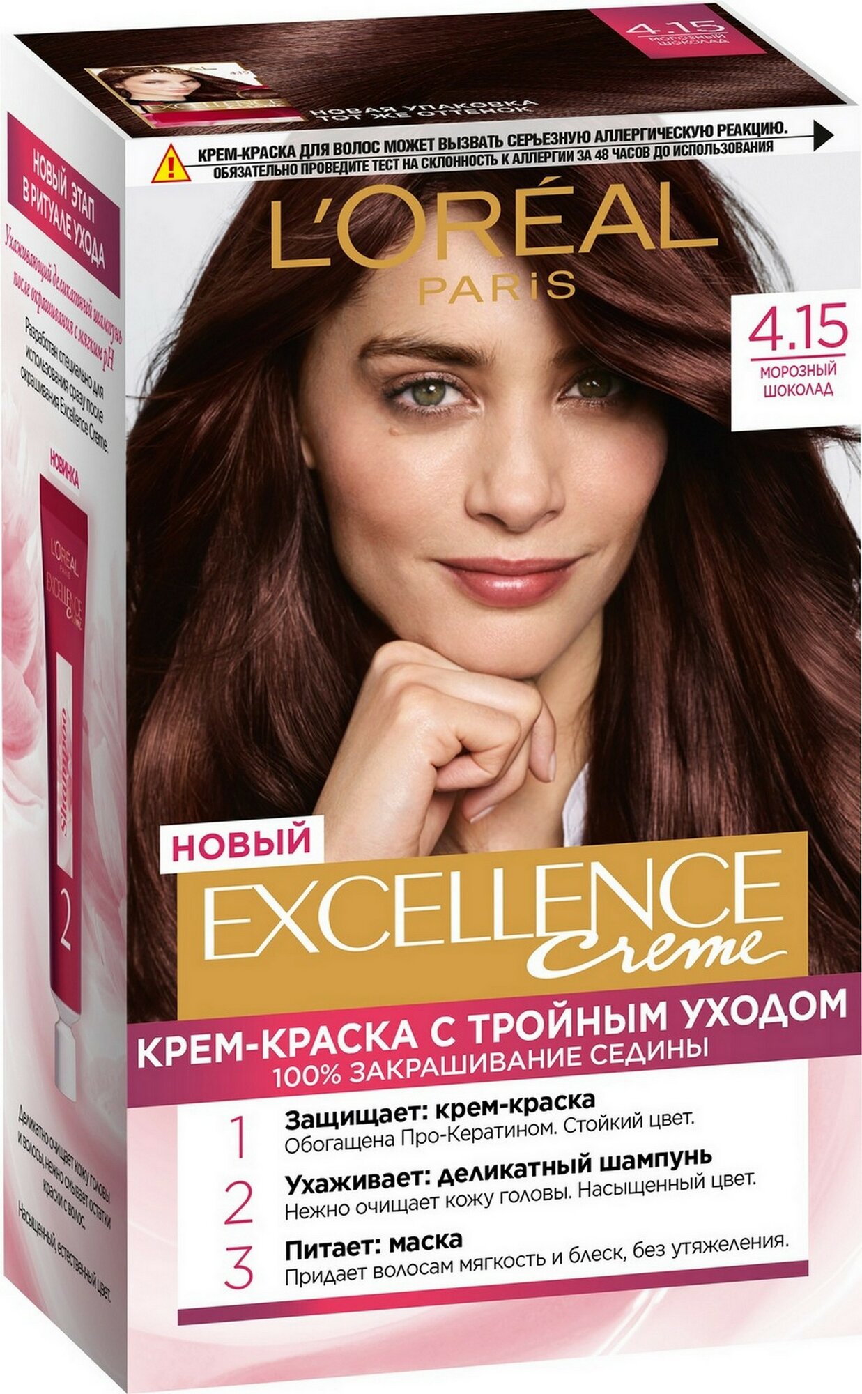 Ниже Вы можете прочитать отзывы на L'Oreal Paris Excellence стойкая крем-краска для волос, 4.15 Морозный шоколад - 3 шт, ознакомится с подробными характеристиками, посмотреть интересные обзоры и фотографии на L'Oreal Paris Excellence стойкая крем-краска для волос, 4.15 Морозный шоколад - 3 шт.