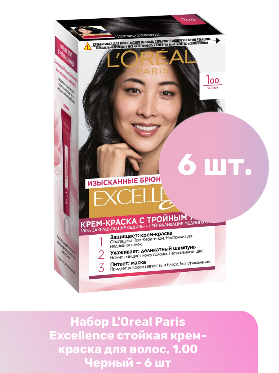 Купить L'Oreal Paris Excellence стойкая крем-краска для волос, 1.00 Черный - 6 шт