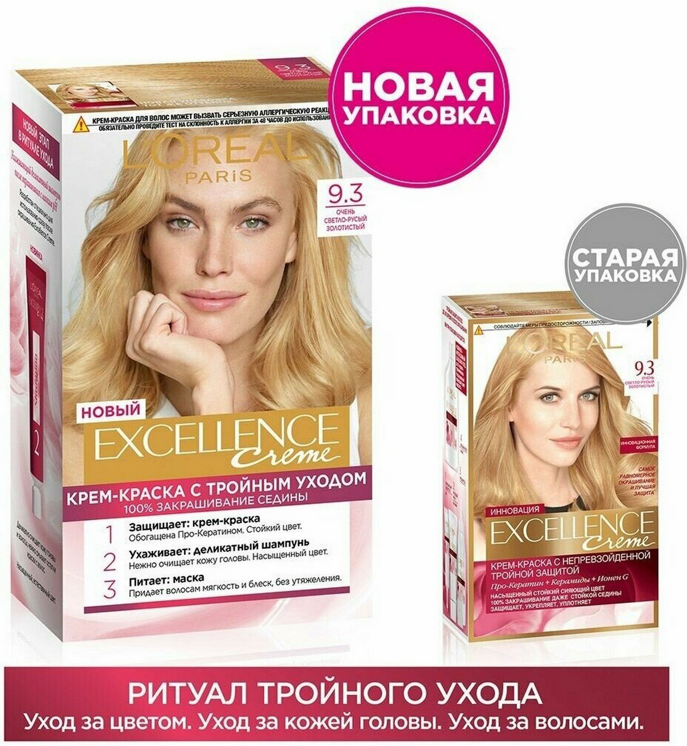 Купить L'Oreal Paris Excellence стойкая крем-краска для волос, 9.3 очень светло-русый золотистый - 3 шт