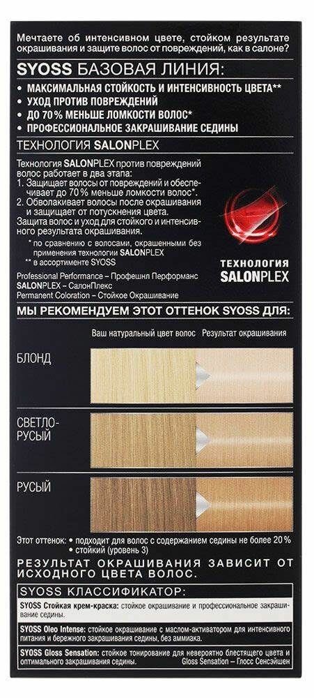 Краска для волос Syoss Color ультра-светлый жемчужный блонд 10-11, 115 мл