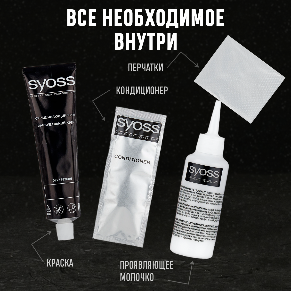 Стойкая Крем-краска для волос Syoss Performance 1-1 Черный, 115мл