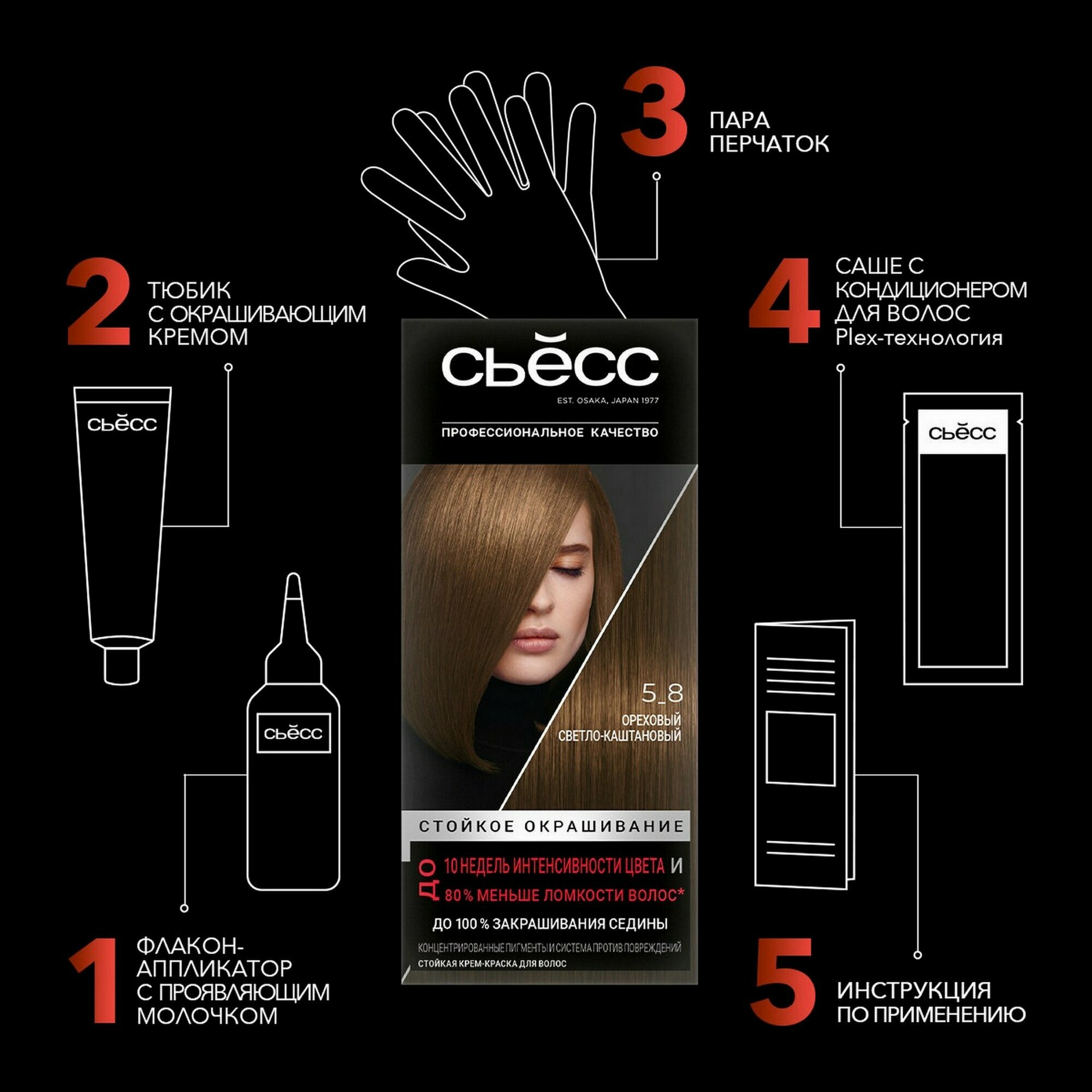 СохранитьСьёсс Стойкая крем-краска для волос Color, 5-8 Ореховый светло-каштановый, 115 мл - 2 шт интересное: