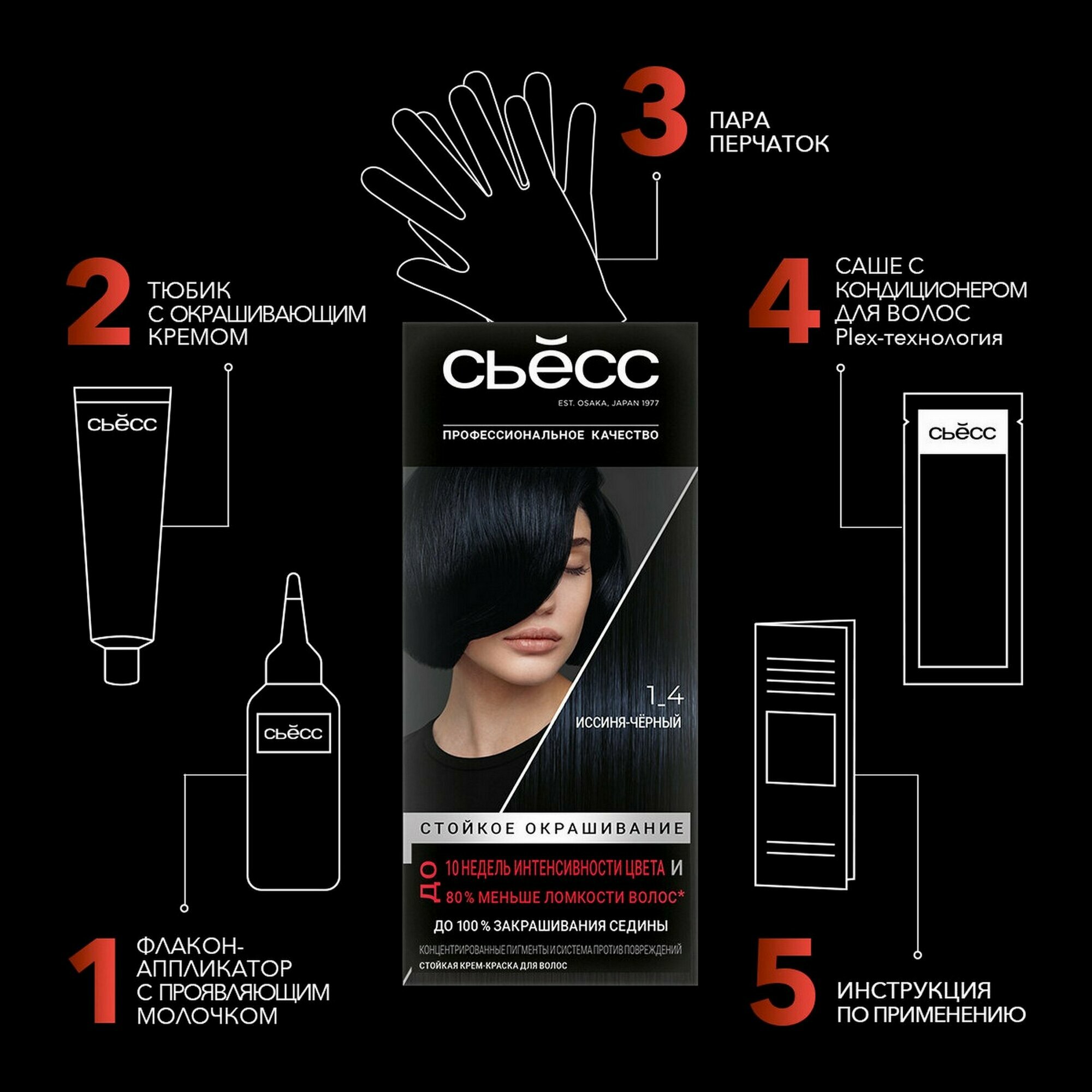 СохранитьСьёсс Стойкая крем-краска для волос Color, 1-4 Иссиня-черный, 115 мл - 6 шт интересное:
