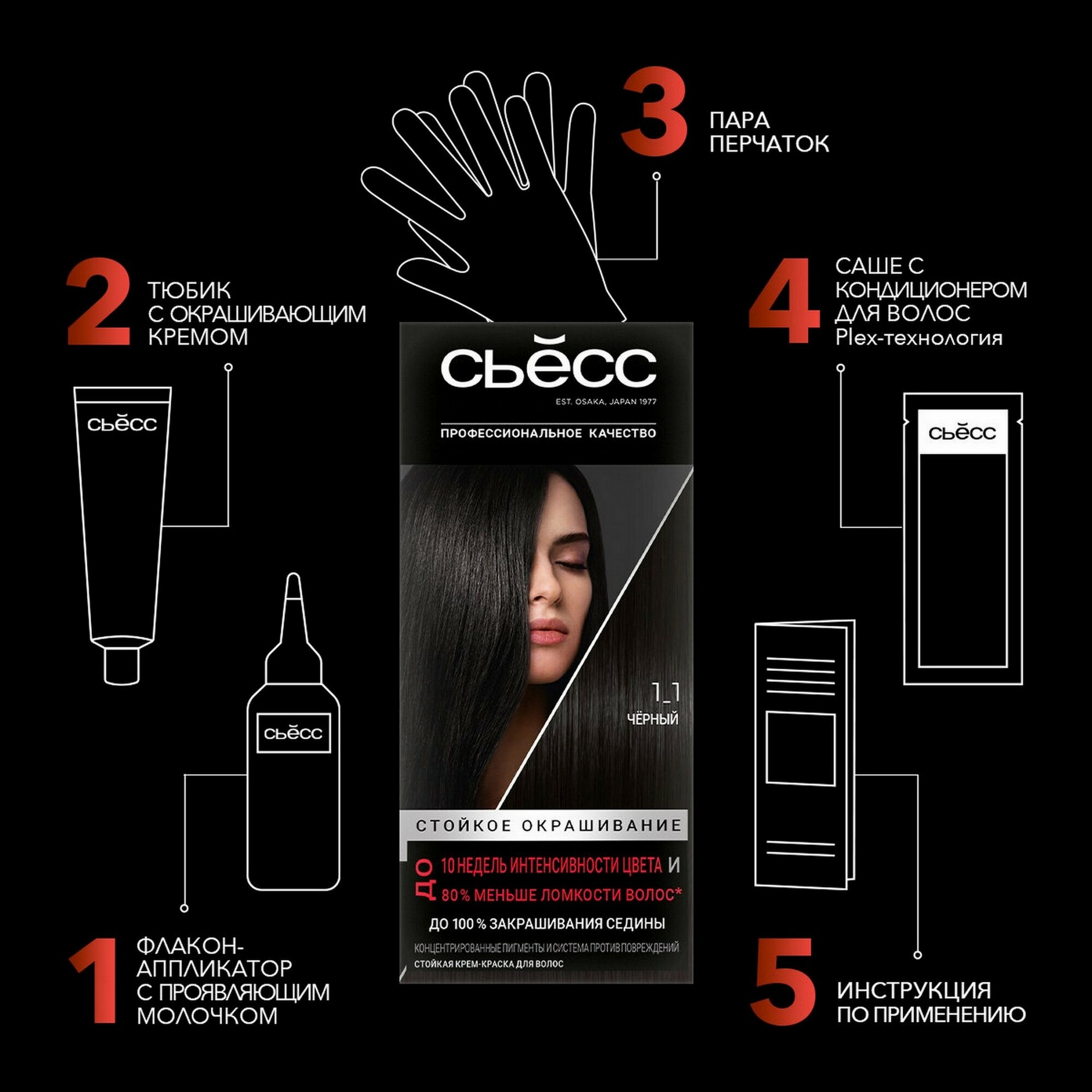 СохранитьСьёсс Стойкая крем-краска для волос Color, 1-1 Черный, 115 мл - 6 шт интересное: