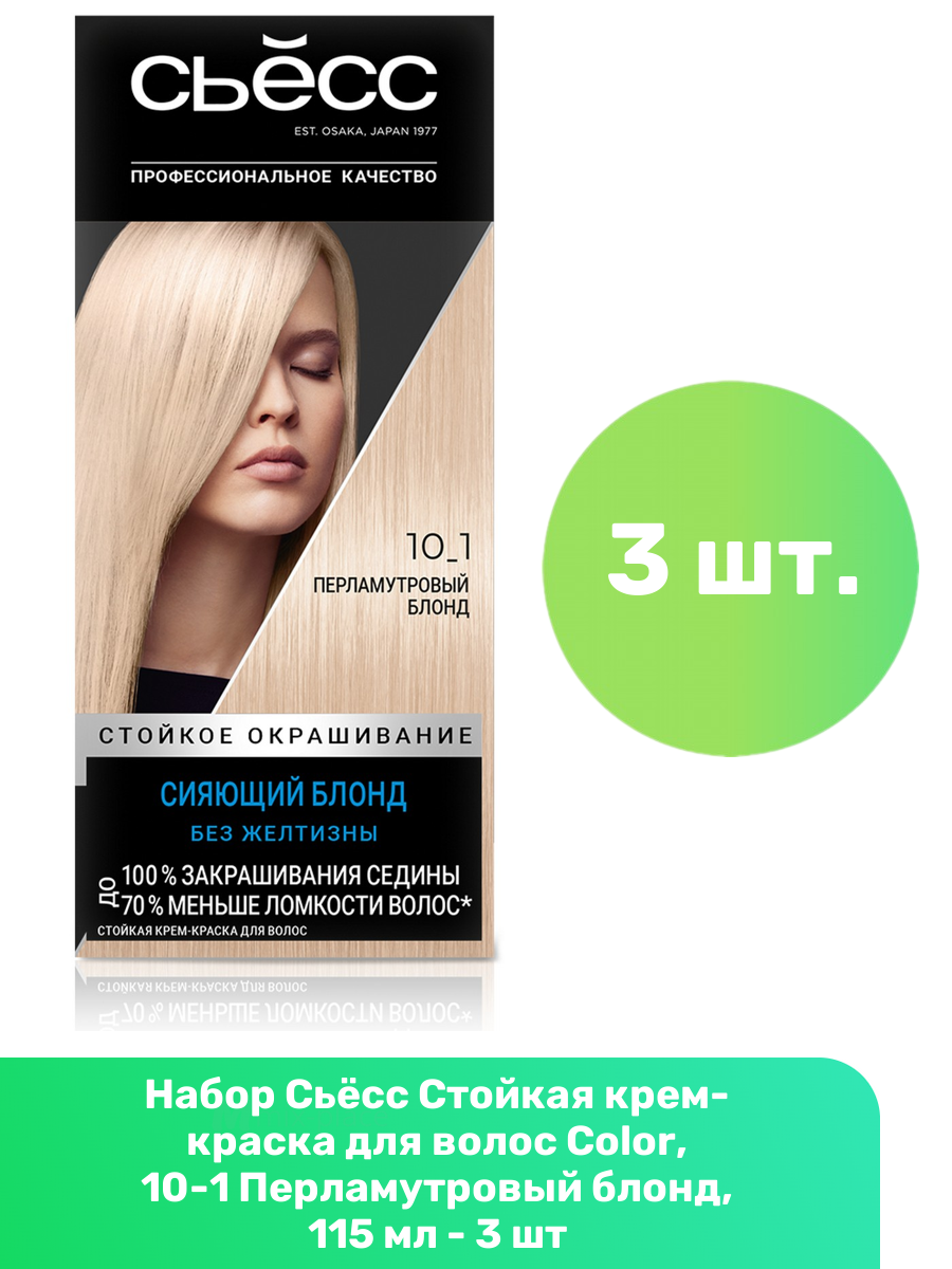 Купить Сьёсс Стойкая крем-краска для волос Color, 10-1 Перламутровый блонд, 115 мл - 3 шт