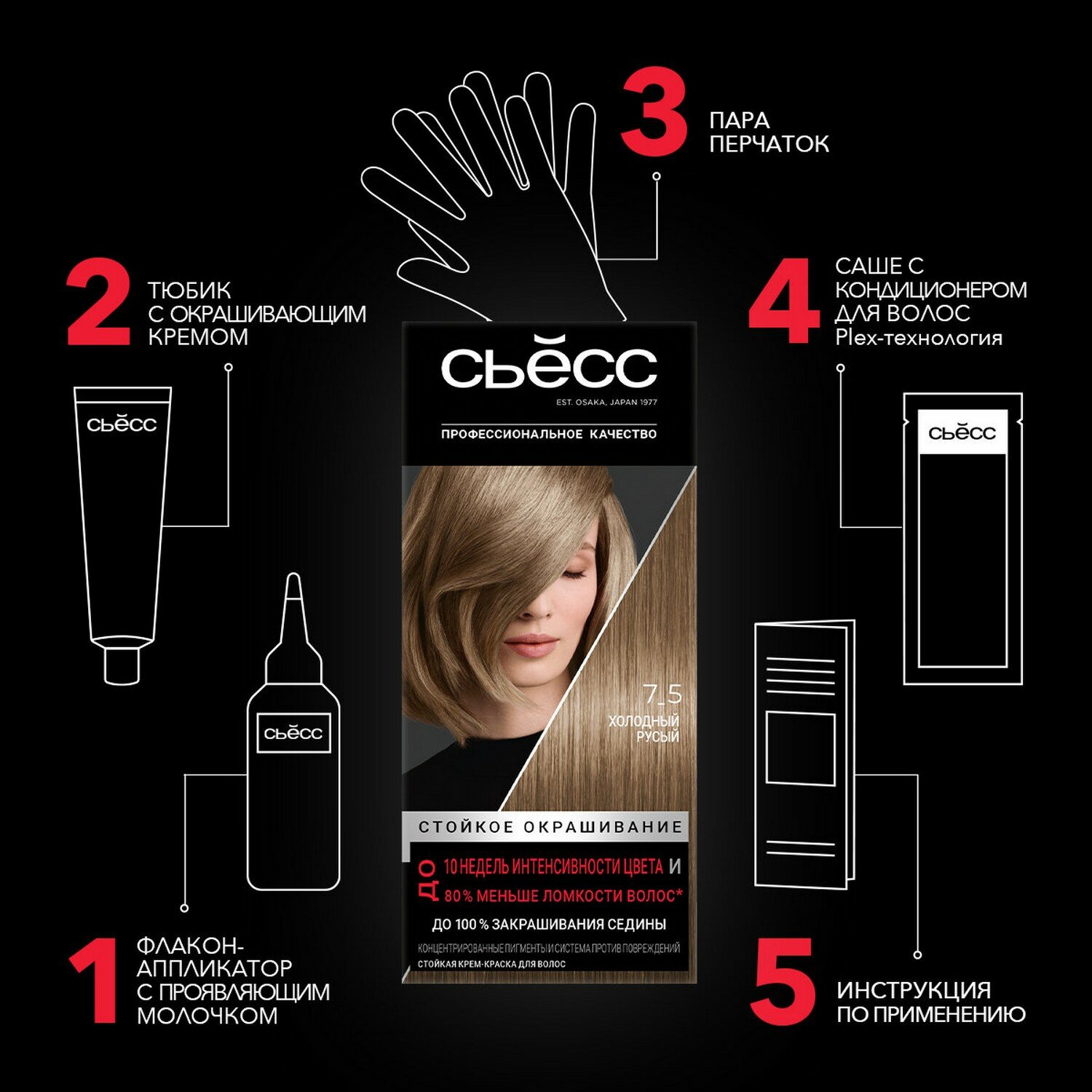 СохранитьСьёсс Стойкая крем-краска для волос Color, 7-5 Холодный русый, 115 мл - 3 шт интересное: