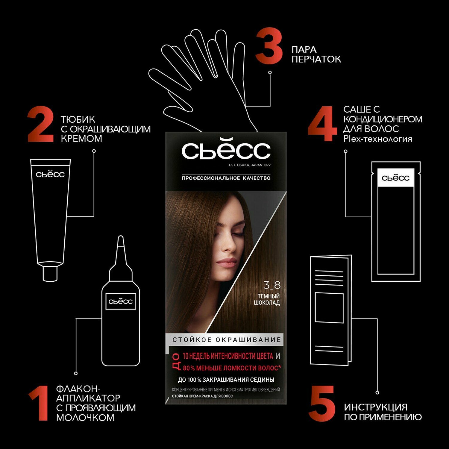 СохранитьСьёсс Стойкая крем-краска для волос Color, 3-8 Темный шоколад, 115 мл - 6 шт интересное: