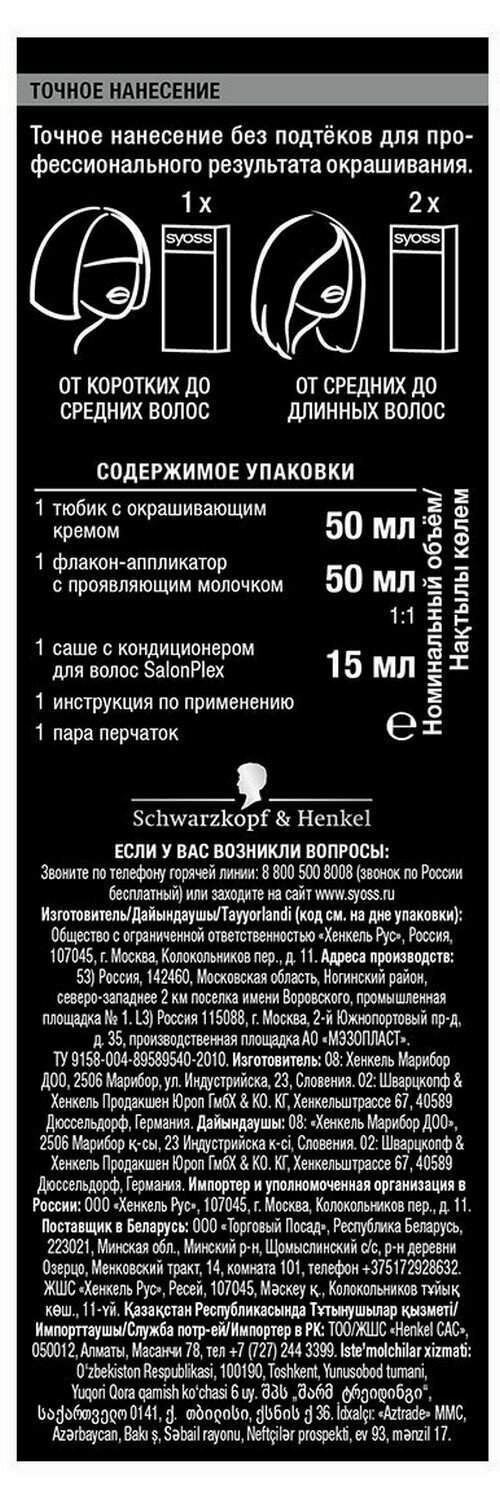 SYOSS Color Краска для волос 1-1 Черный 115 мл 1 шт
