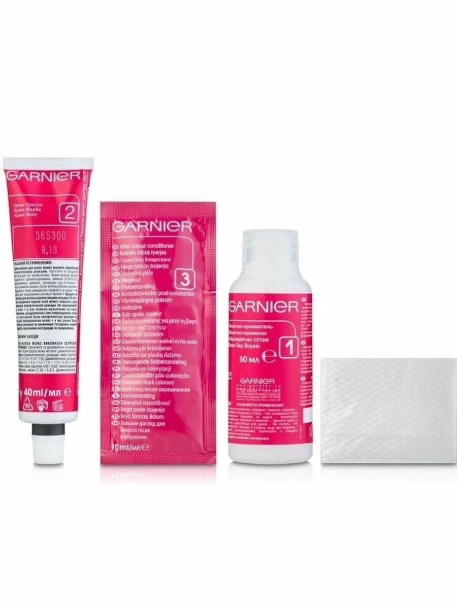 | Способ применения | Смешайте крем-краску и молочко-проявитель. Нанесите на волосы. Подождите рекомендованное на упаковке время и смойте. Нанесите бальзам. Смойте. Для усиления защиты цвета от вымывания используйте шампунь для окрашенных волос |