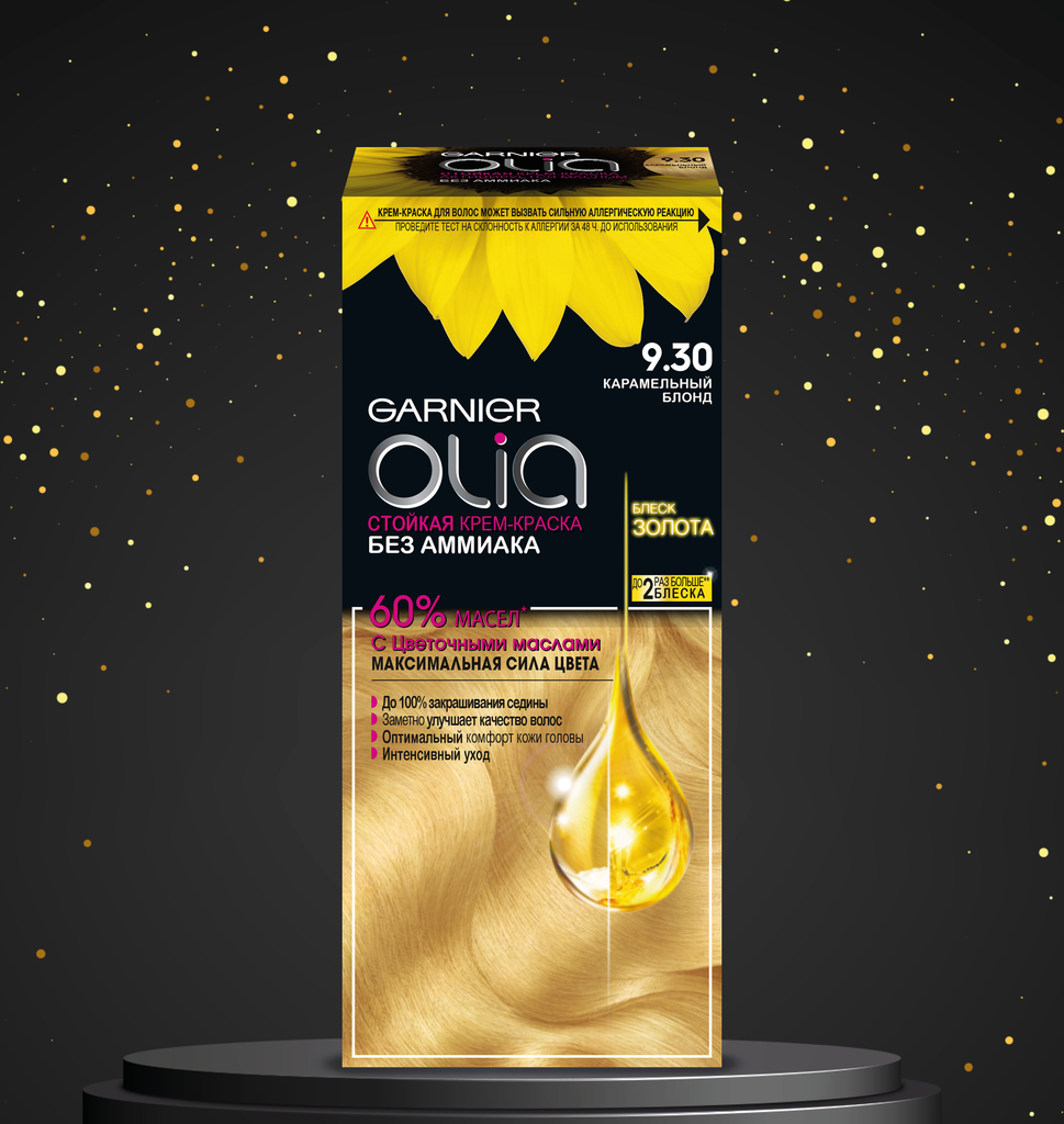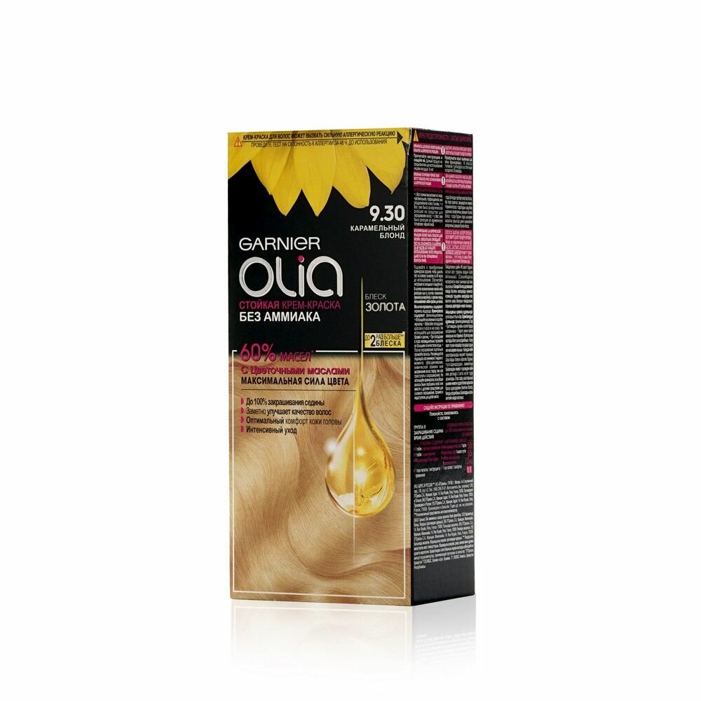 Garnier Olia, 9.30 Карамельный блонд, Стойкая крем-краска для волос без аммиака, 2 шт