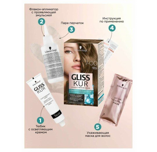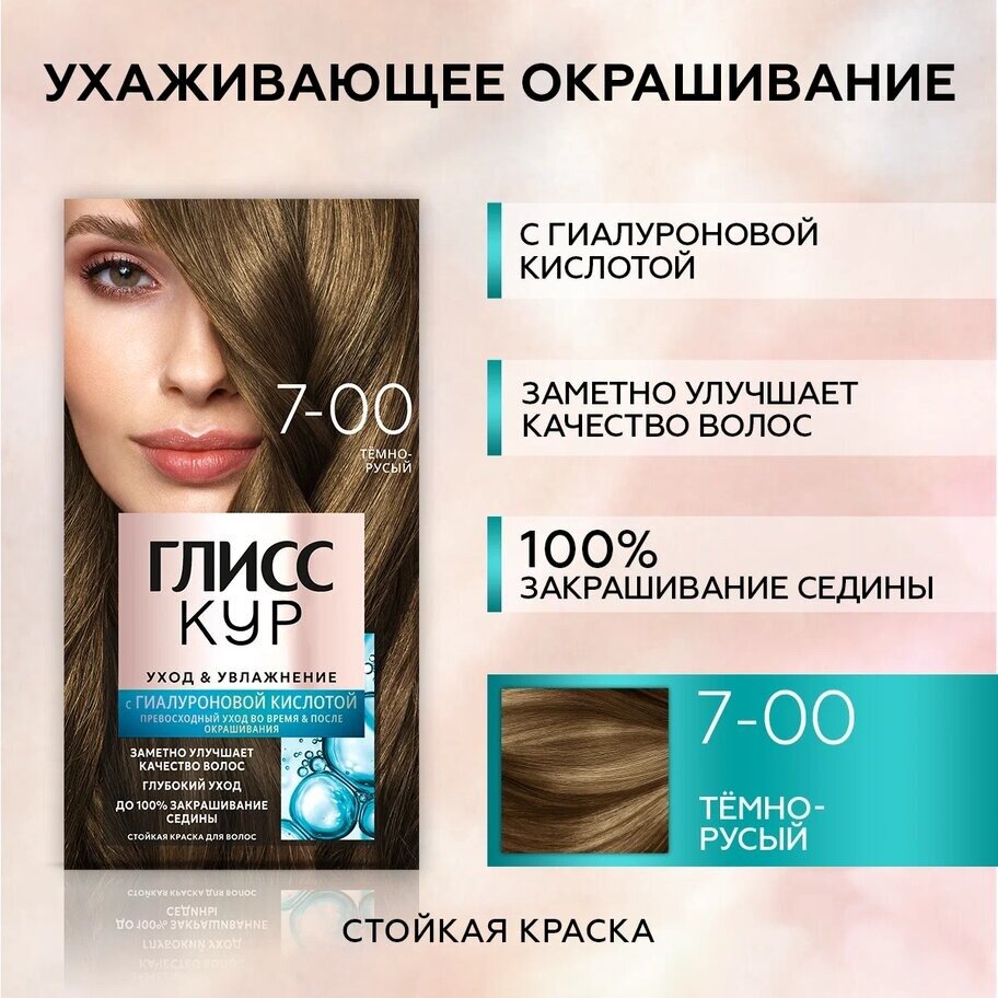 Глисс Кур Уход & Увлажнение Стойкая краска для волос, 7-00 темно-русый, 143 мл