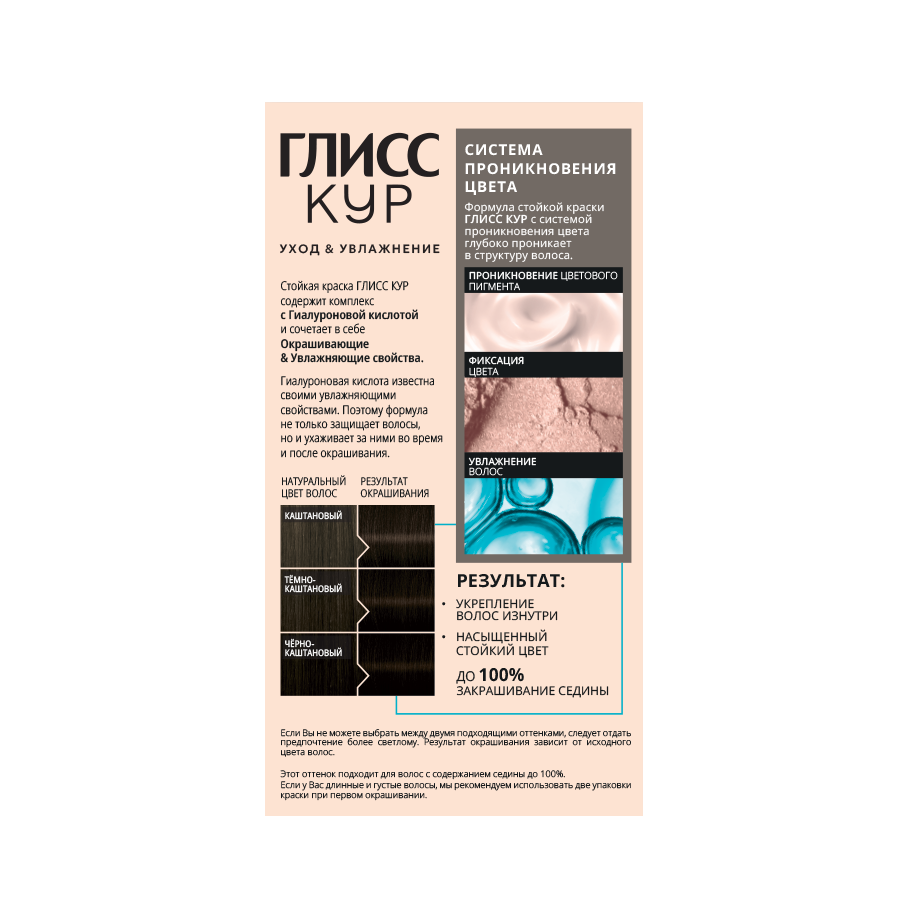 Краска для волос Глисс Кур черно-каштановый 3-0, 143 мл