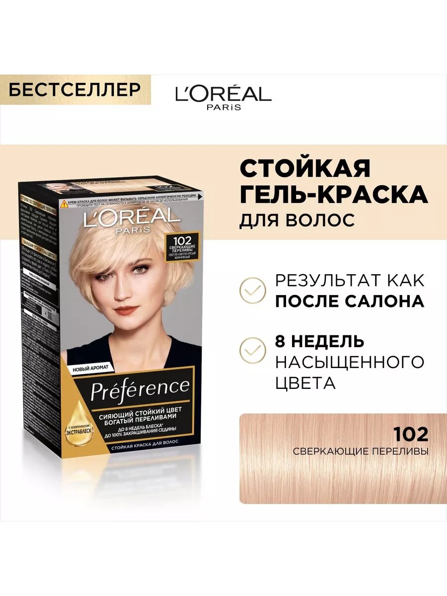 Купить L'Oreal Paris Preference стойкая краска для волос, 102 сверкающие переливы - 1 шт