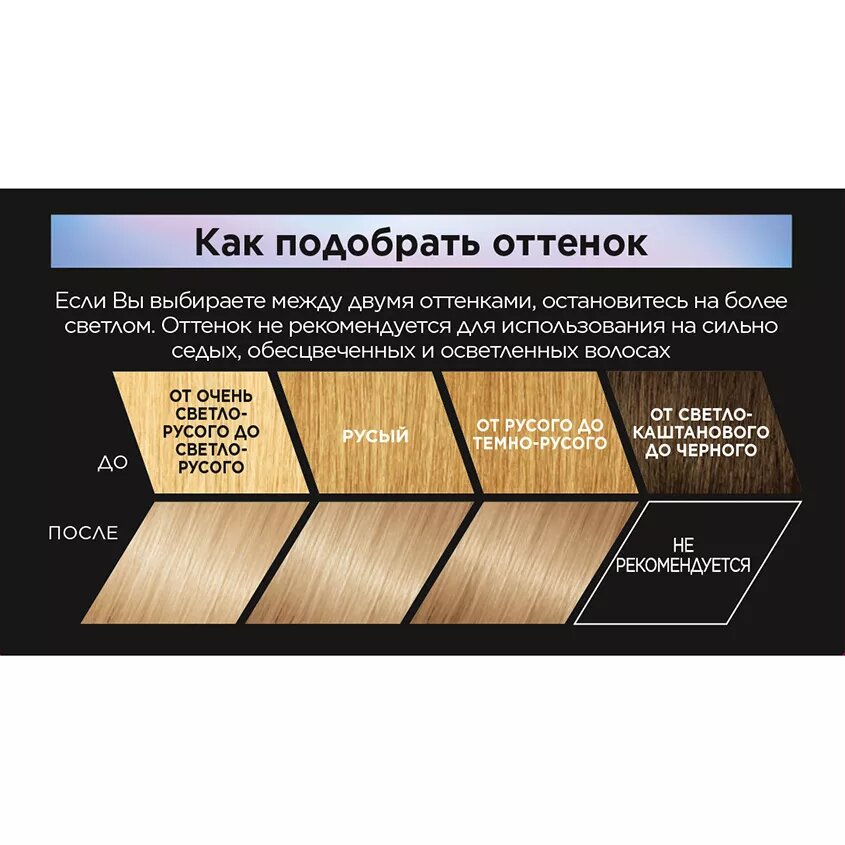 | Способ применения | перед началом окрашивания необходимо снять украшения и нанести крем по контуру лица, чтобы защитить кожу от попадания краски. Перед применением следует пройти тест на аллергическую реакцию. Внимательно прочтите инструкцию, следуйте ее рекомендациям |