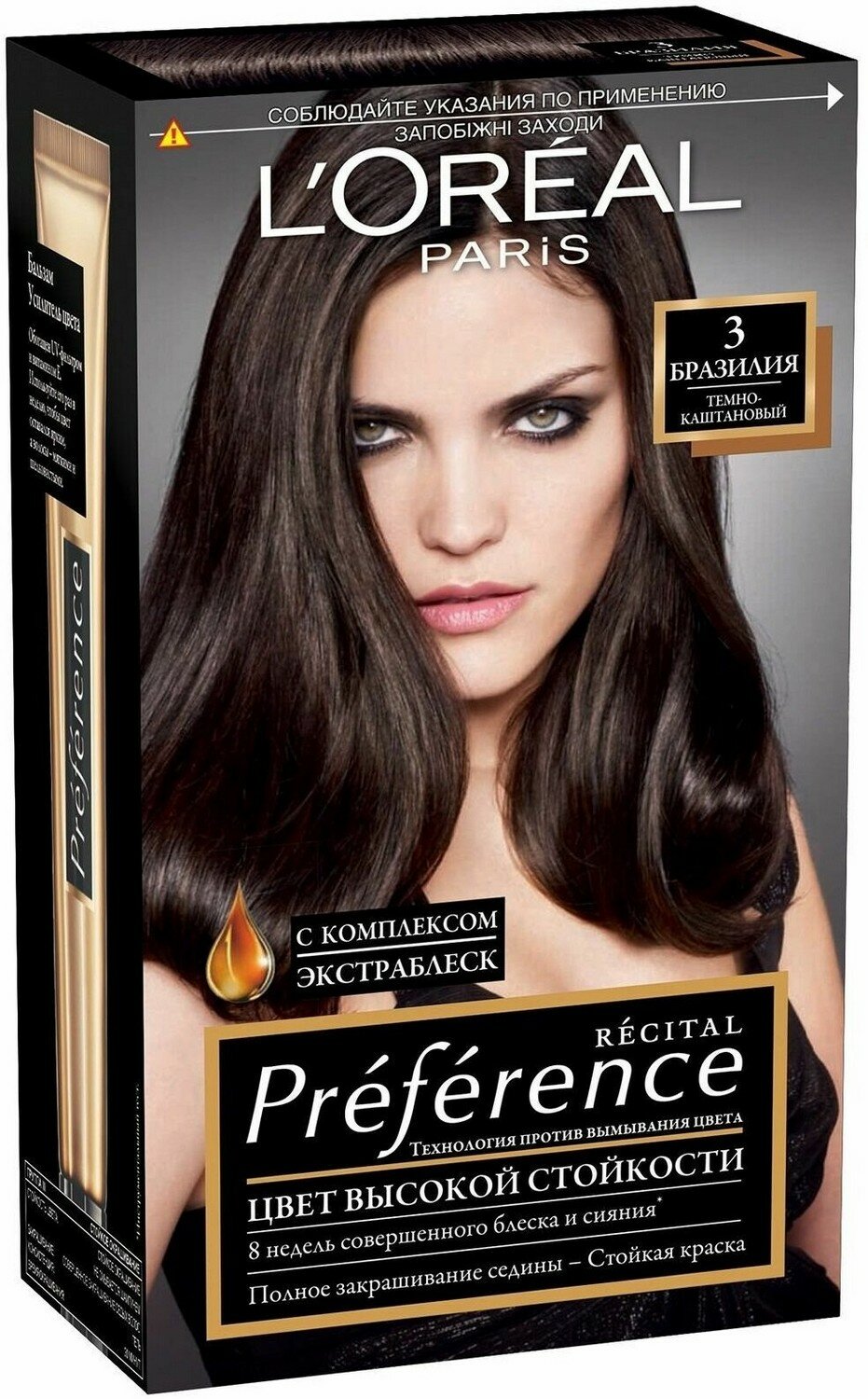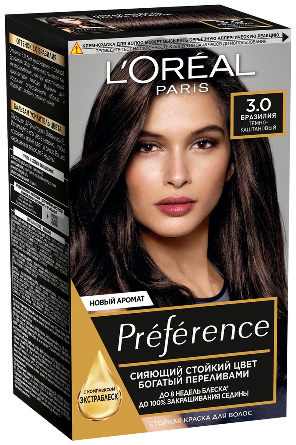 Краска для волос L'Oreal Paris Preference, оттенок: 3.0 Бразилия, темно-каштановый, 174 мл