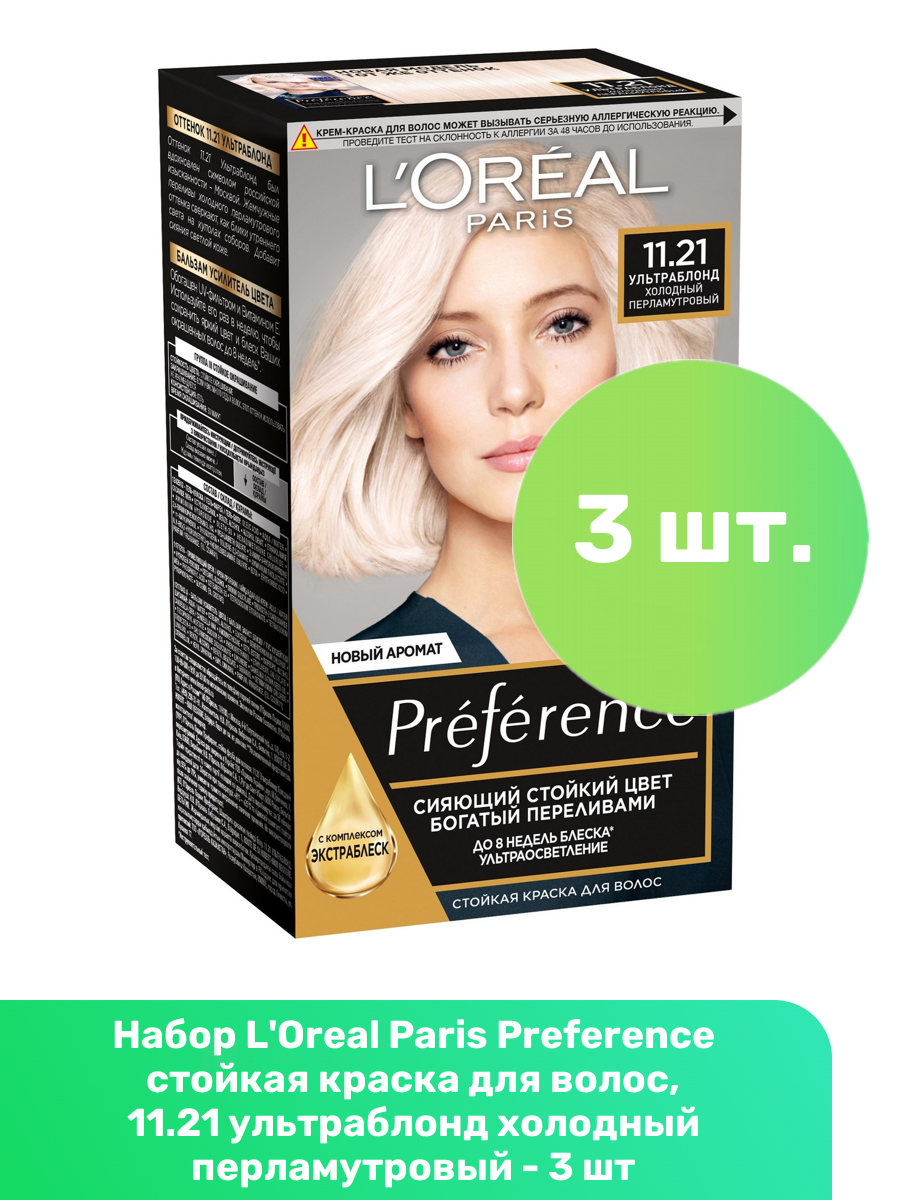 Купить L'Oreal Paris Preference стойкая краска для волос, 11.21 ультраблонд холодный перламутровый - 3 шт
