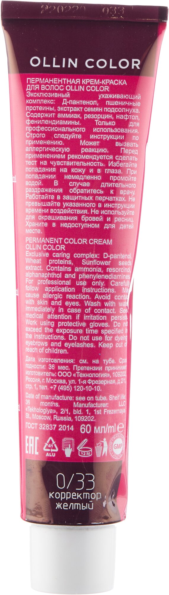 Крем-краска OLLIN COLOR для окрашивания волос OLLIN PROFESSIONAL 0/33 корректор желтый 60 мл