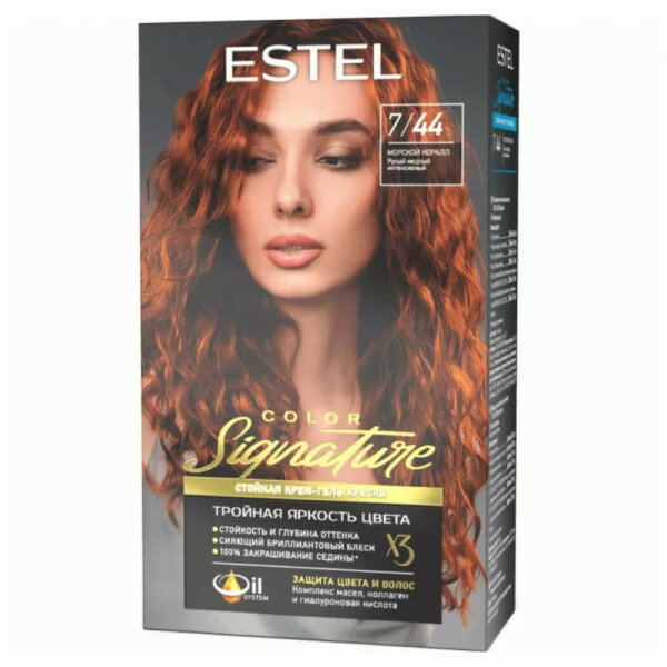 ESTEL Стойкая крем-гель краска для волос COLOR Signature, 7/44 морской коралл, 120 мл