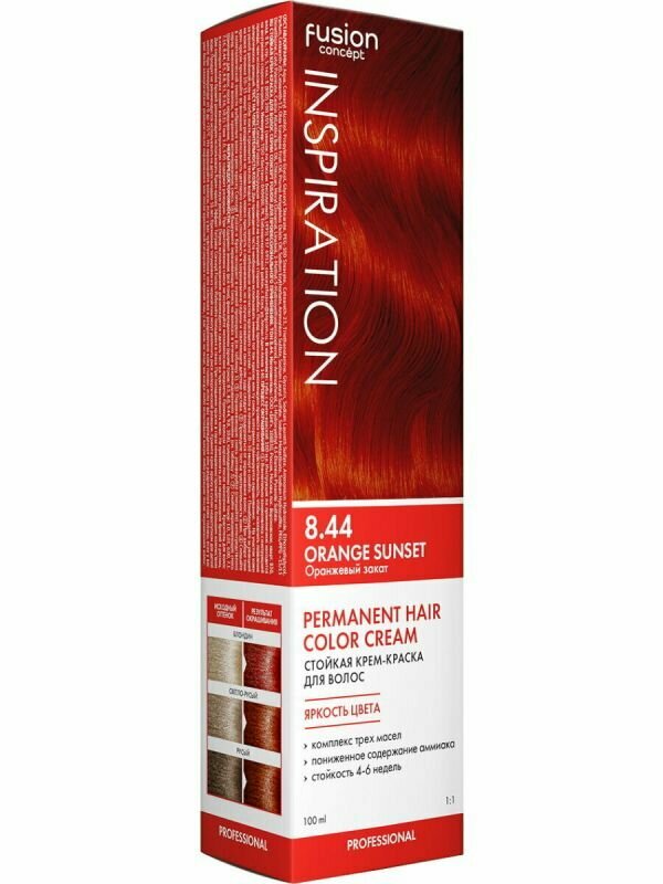 Concept Fusion Краска для волос 8.44 Fusion Оранжевый закат (Orange sunset), красная коллекция, 100мл