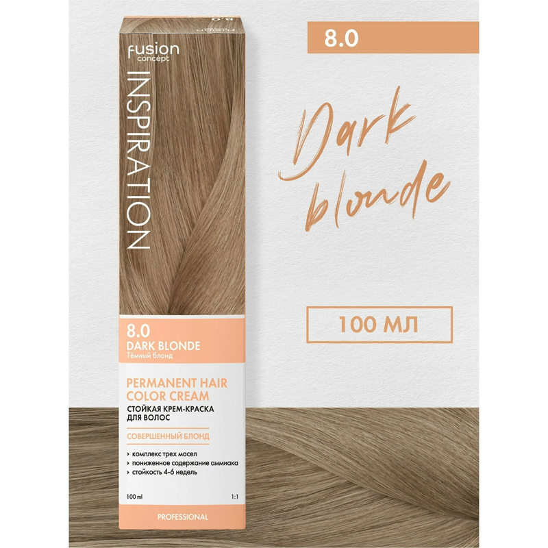Concept Fusion Краска для волос 8.0 Fusion Темный блонд (Dark Blonde), золотая коллекция, 100мл