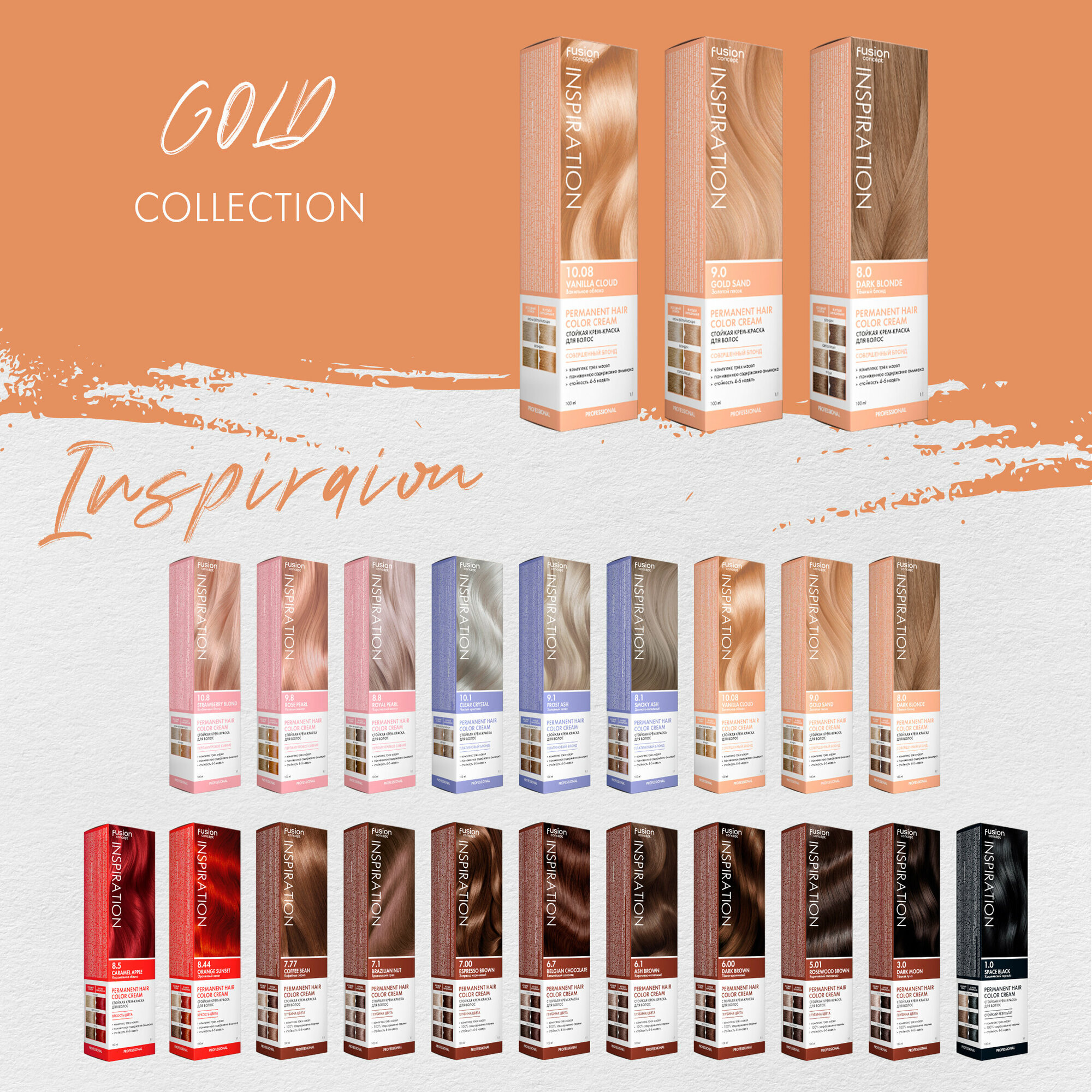 Concept Fusion Краска для волос 9.0 Fusion Золотой песок (Gold Sand), золотая коллекция, 100мл