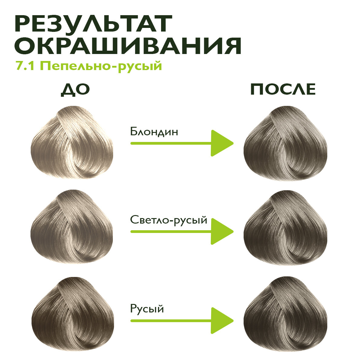 Стойкая крем краска для волос 7.1 Пепельно-русый, 50/50/15 мл