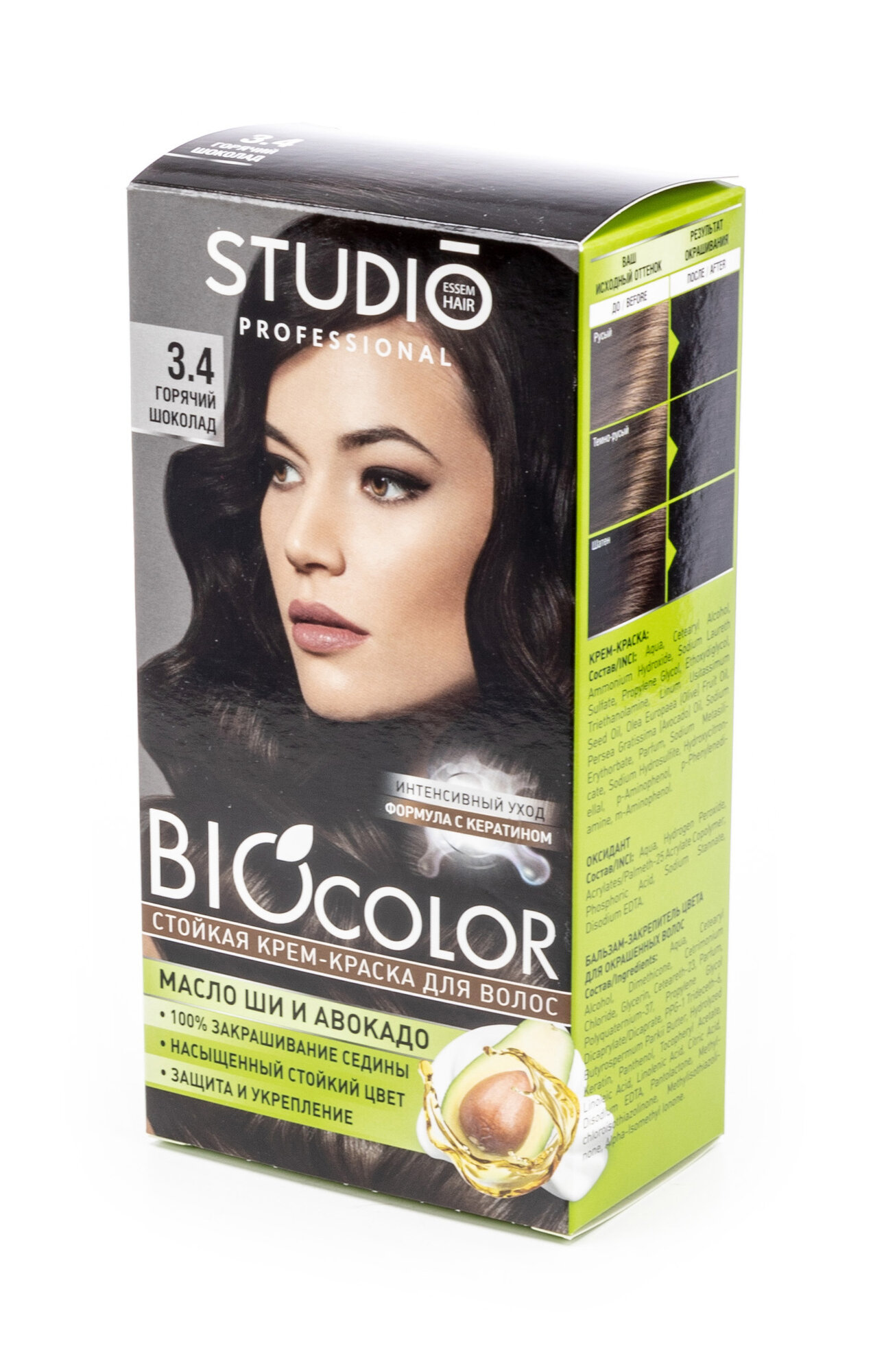 Essem Hair Studio Professional BioColor стойкая крем-краска для волос, 3.4 горячий шоколад, 115 мл