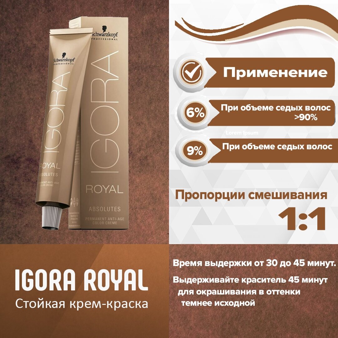 Schwarzkopf IGORA ROYAL Absolute 6-460 Темный русый бежевый шоколадный натуральный Стойкая крем-краска для седых волос 60 мл