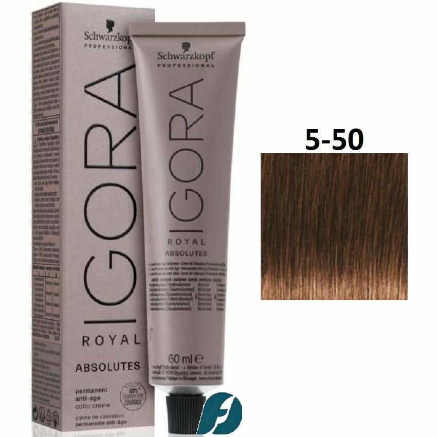 Купить Schwarzkopf IGORA ROYAL Absolute 5-50 Стойкая крем-краска для седых волос Светлый коричневый золотистый натуральный 60 мл