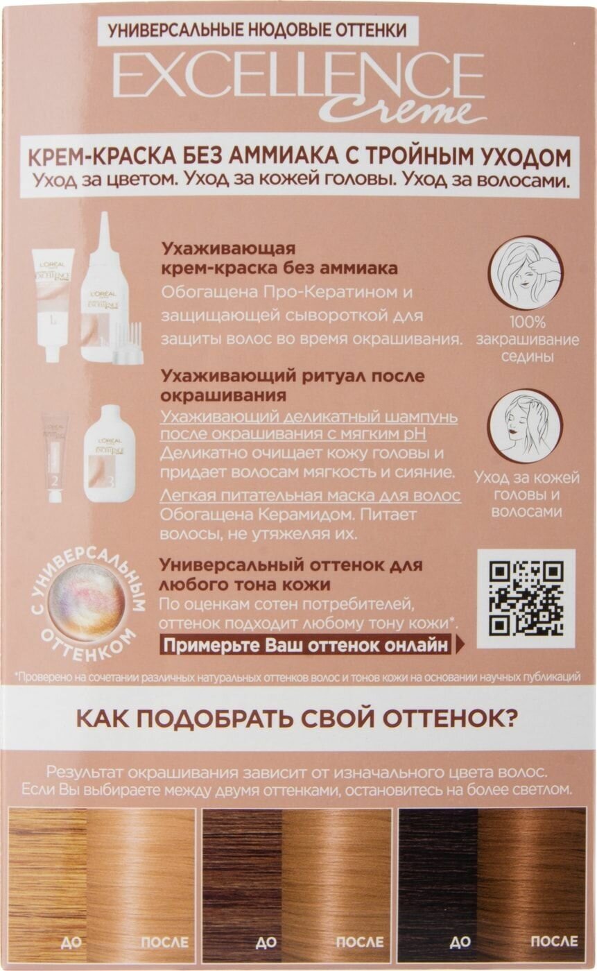 Loreal Paris Крем-краска для волос Excellence Creme Nudes 7U универсальный русый 1 шт