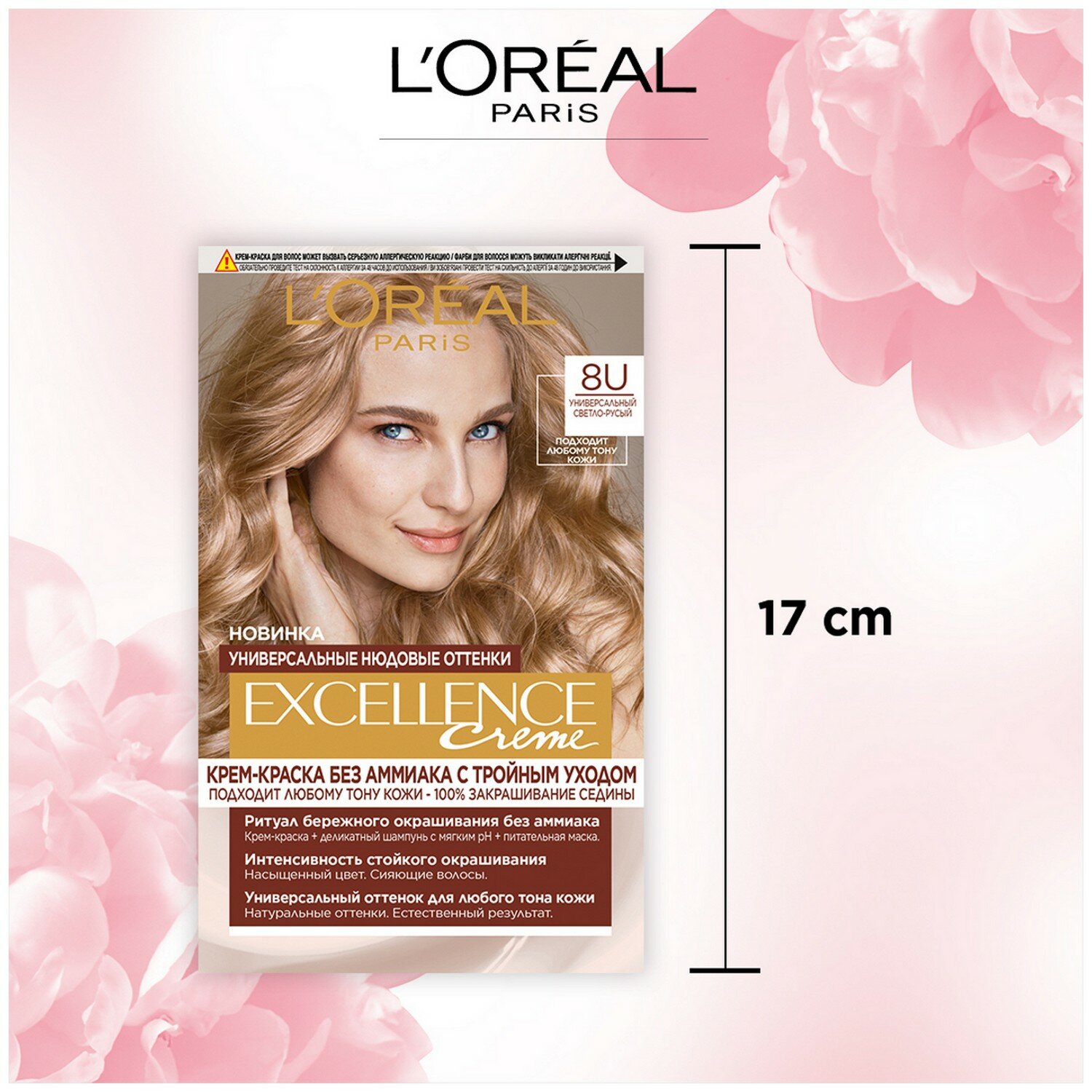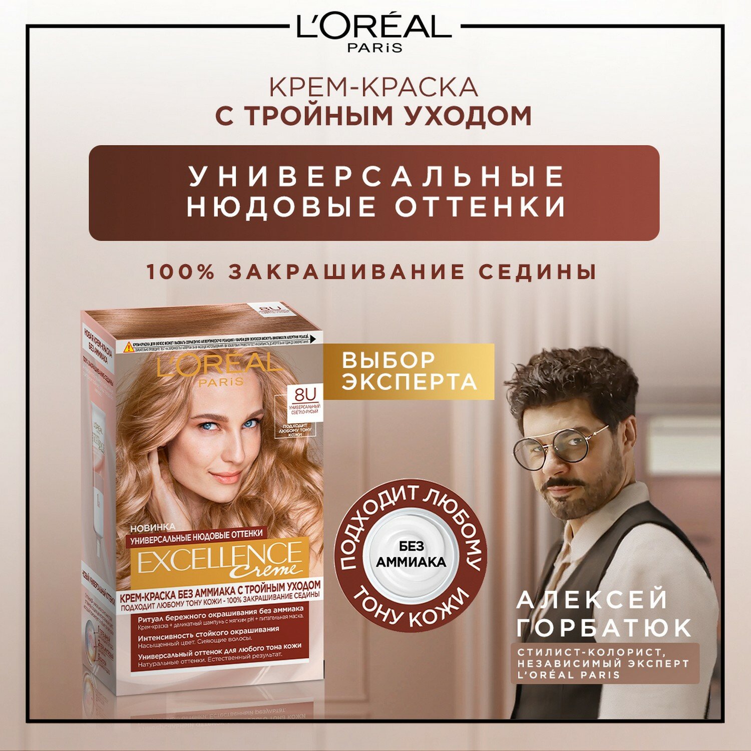 L'Oreal Paris крем-краска для волос без аммиака "Excellence Crème Универсальные Нюдовые Оттенки", оттенок 8U, универсальный светло-русый