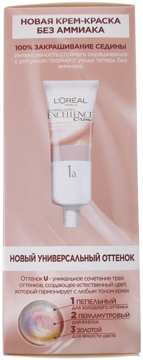 Краска для волос без аммиака L'Oreal Paris Excellence Nudes, тон: 1U универсальный черный, 192мл