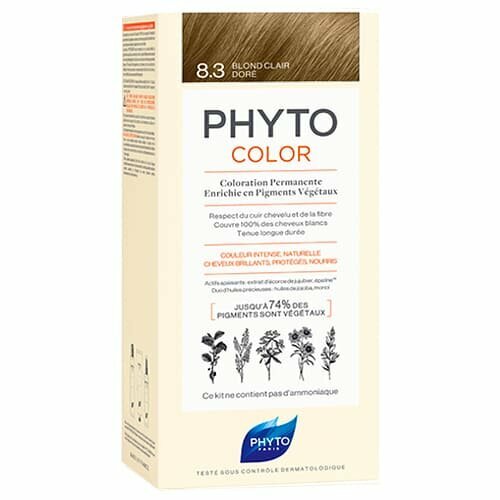 PHYTO Крем-краска для волос тон 8.3 (светлый золотистый блонд), 50/50/12