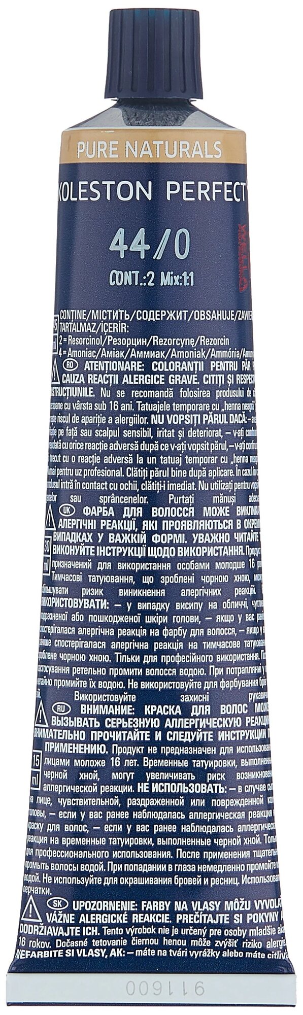 Купить Wella Professionals Koleston Perfect Me+ PURE NATURALS Профессиональная стойкая крем-краска для волос 44/0 коричневый интенсивный натуральный 80 мл / KP ME+