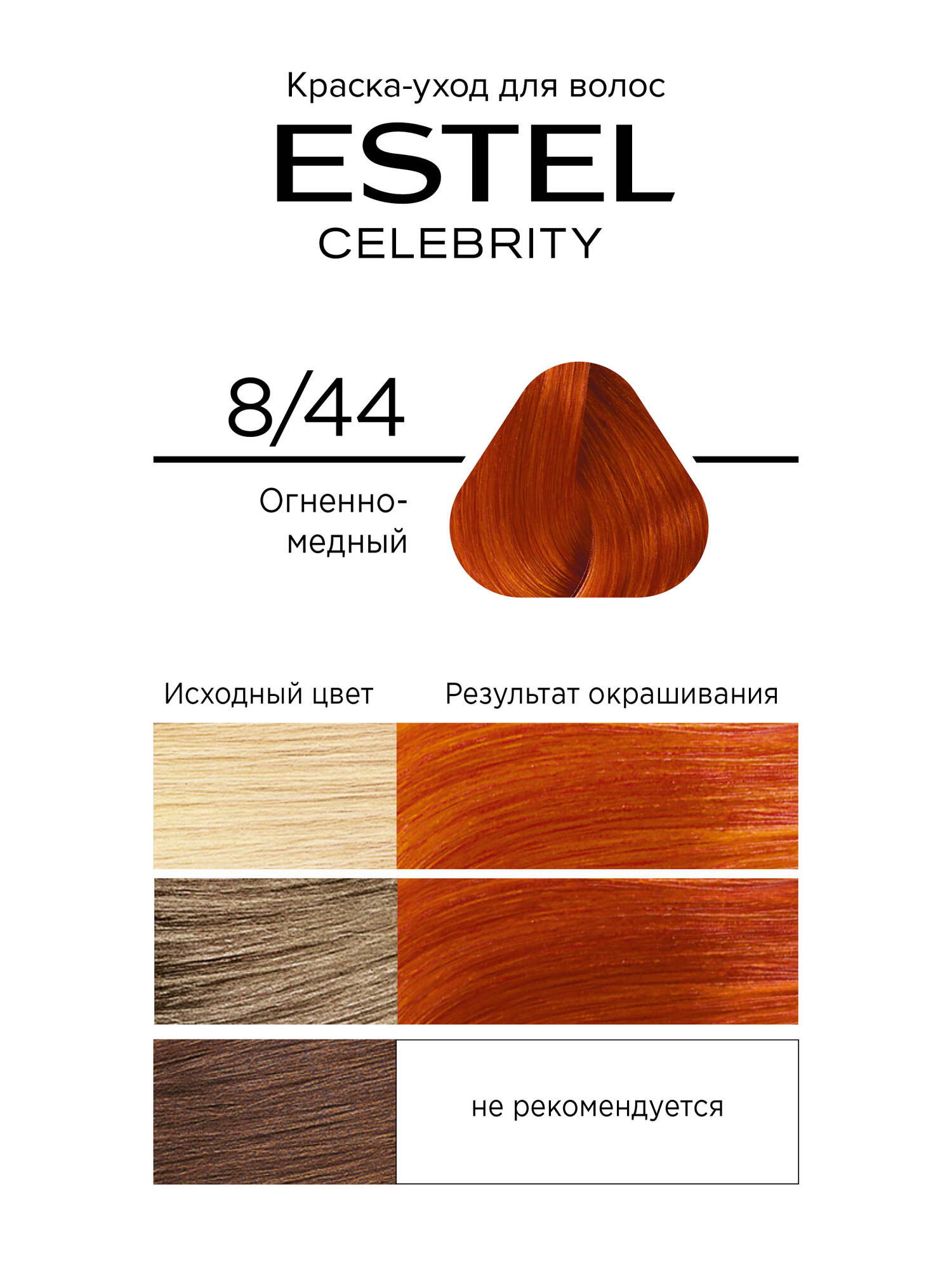 ESTEL Краска-уход для волос без аммиака "CELEBRITY", 8/44 Огненно-медный, 1 шт