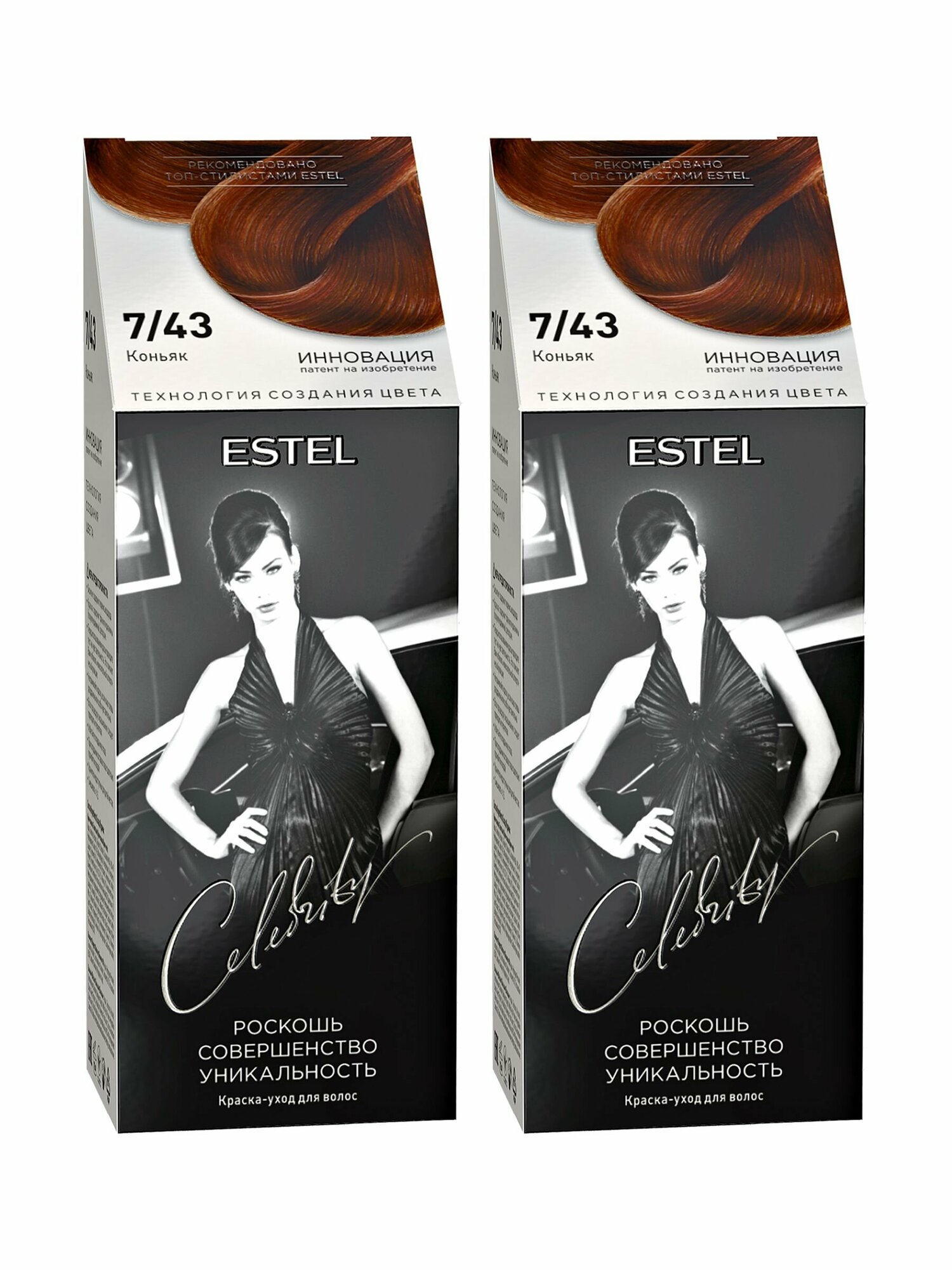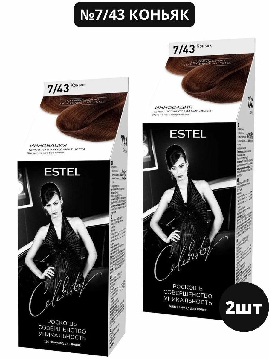 Купить Estel Краска-уход для волос без аммиака CELEBRITY тон 7/43 коньяк, набор 2 шт