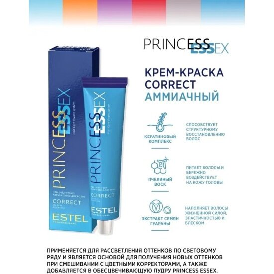 ESTEL Princess Essex Corrector цветная крем-краска для волос, 0/00A аммиачный, 60 мл