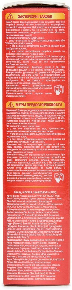 | Комплектация | Стойкая крем-краска -2 саше 25 ml (мл) Крем-окислитель - 2 саше 25 ml (мл) Бальзам - 2 саше 10 ml (мл) Перчатки Инструкция |