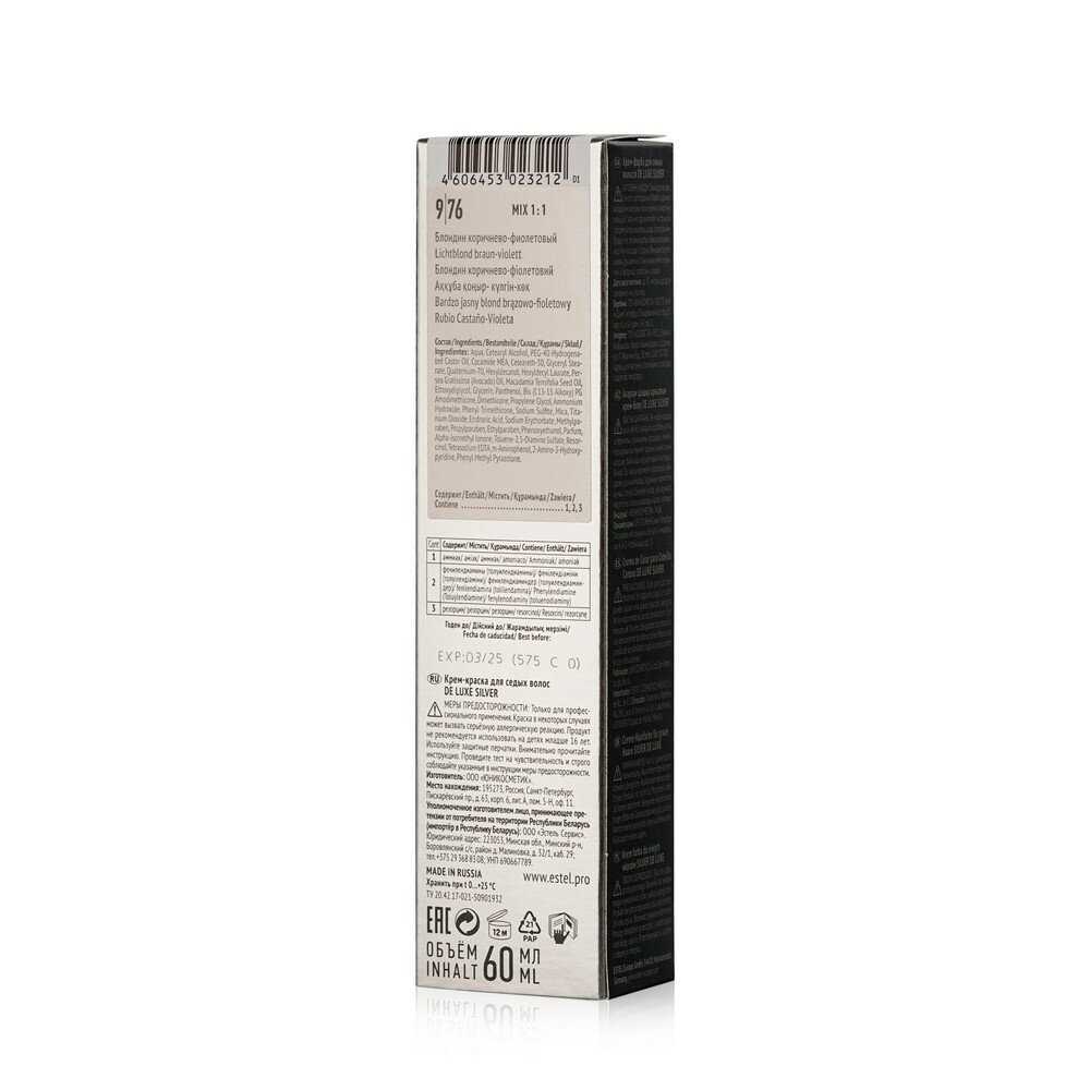 ESTEL De Luxe Silver крем-краска для седых волос, 9/76 блондин коричнево-фиолетовый, 60 мл