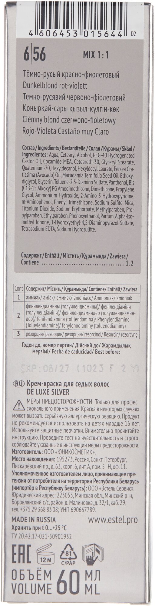 Купить ESTEL De Luxe Silver крем-краска для седых волос, 6/56 темно-русый красно-фиолетовый, 60 мл