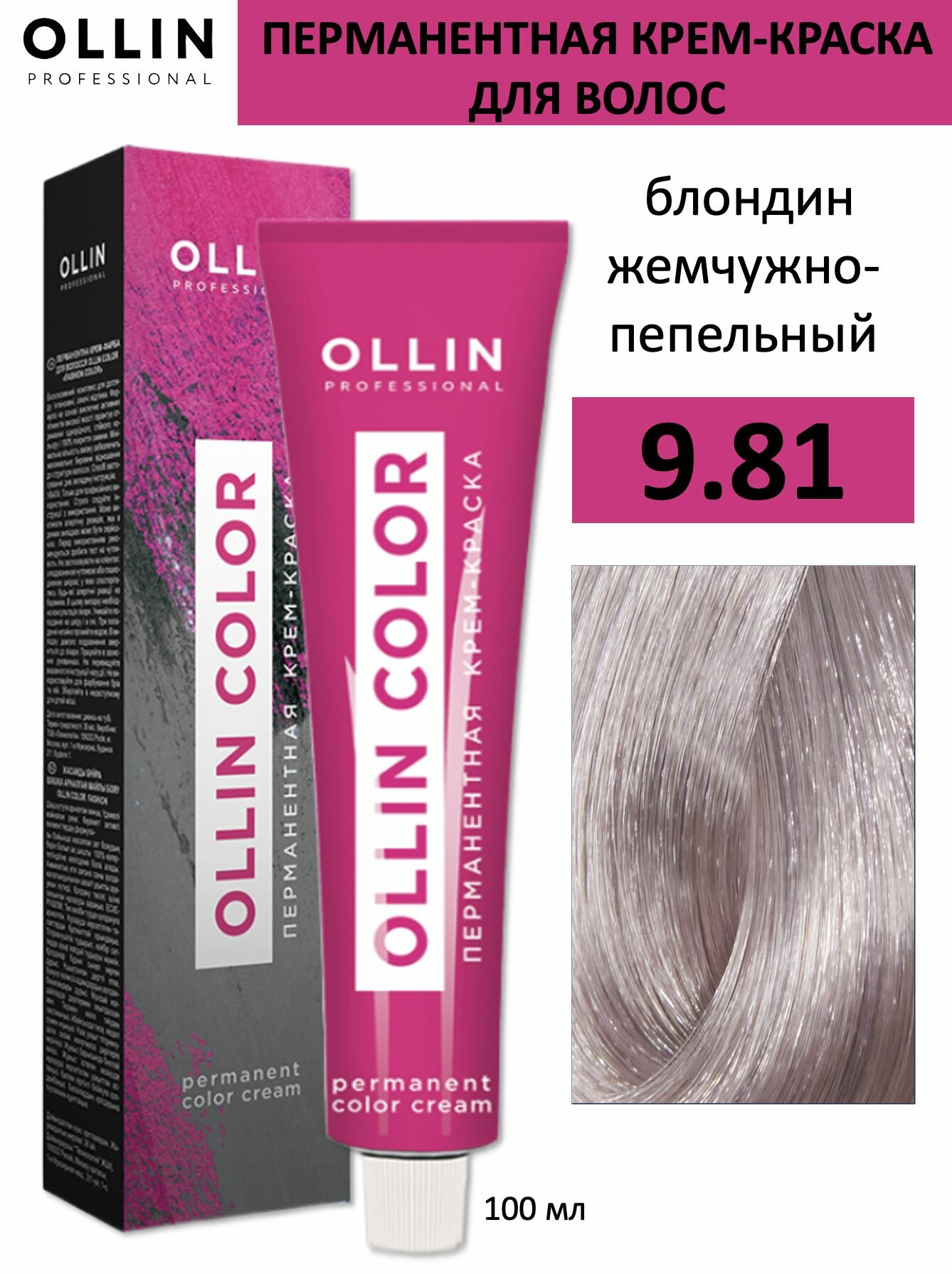 Ollin Color - Оллин Колор Стойкая крем-краска для волос, 100 мл - OLLIN COLOR 9/1 блондин пепельный