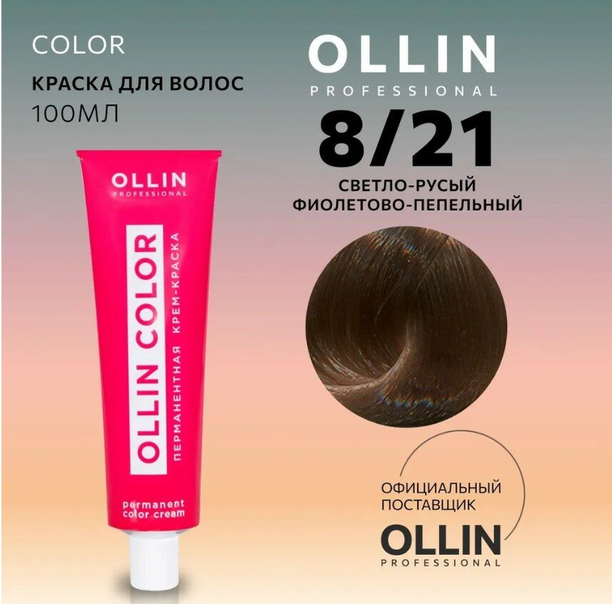 Ollin, Крем-краска для волос Color 8/21 Светло-русый фиолетово-пепельный, перманентная, 100 мл