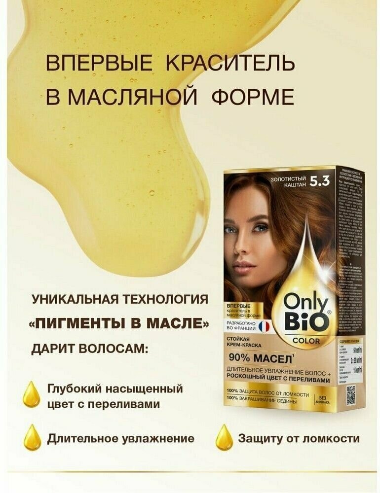 Fito косметик Стойкая крем-краска Only Bio Color, 5.3 золотистый каштан, 115 мл