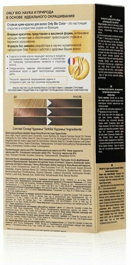 Only Bio Крем-краска для волос Color, 7.3 сияющая карамель