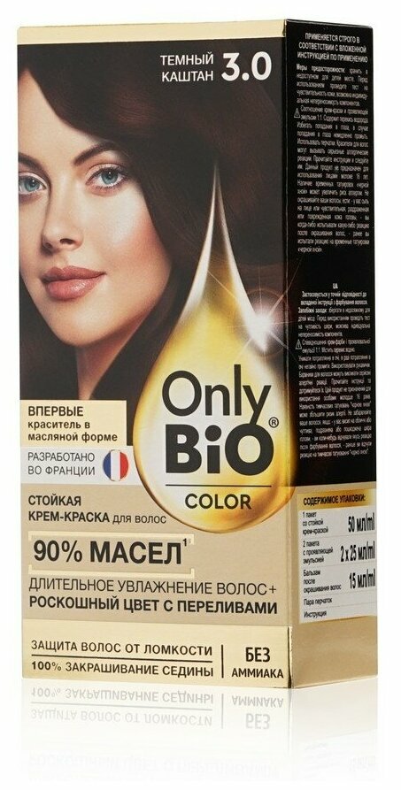 Only Bio Крем-краска для волос Color, 3.0 тёмный каштан, 115 мл