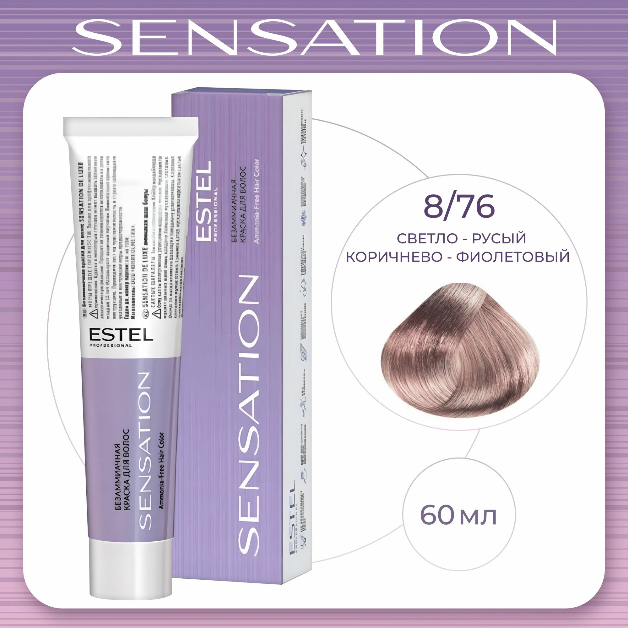 ESTEL Sensation безаммиачная крем-краска для волос, 8/16 светло-русый пепельно-фиолетовый, 60 мл