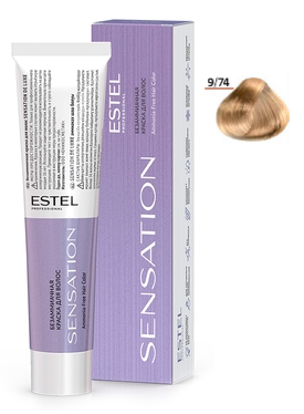 SEN9/74 Безаммиачная краска для волос SENSATION DE LUXE 9/74 блондин коричнево-медный, 60 мл.