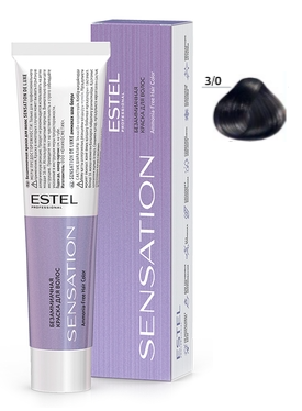 Безаммиачная краска для волос SENSATION DE LUXE 3/0 тёмный шатен (60 мл)